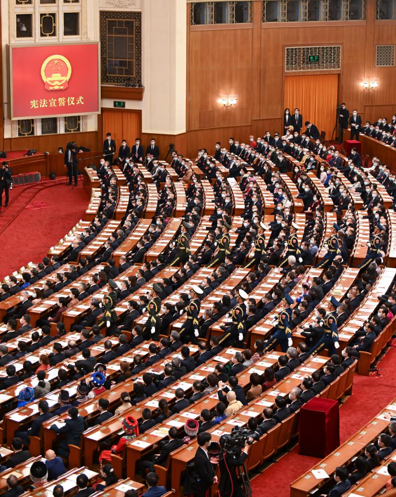 3月10日,中華人民共和國第十四屆全國人民代表大會第一次會議憲法宣誓儀式在北京人民大會堂舉行。