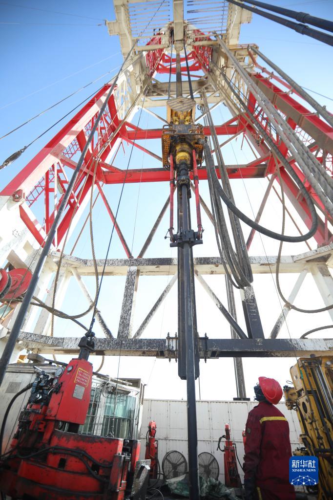 2月9日,在建設中的果勒3C井,工人在查看鉆機運行狀況。