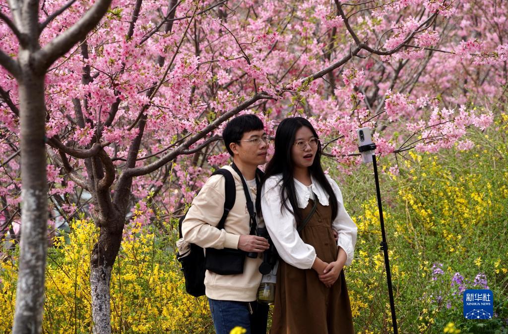 當日,2023年河南·滎陽第八屆黃河櫻花節在滎陽市古柏渡豐樂櫻花園開幕,園內綻放的早櫻吸引市民前來賞花游玩。古柏渡豐樂櫻花園有80余種櫻花,約12萬余株,早、中、晚櫻次第開放,賞花期從3月持續至4月中旬。