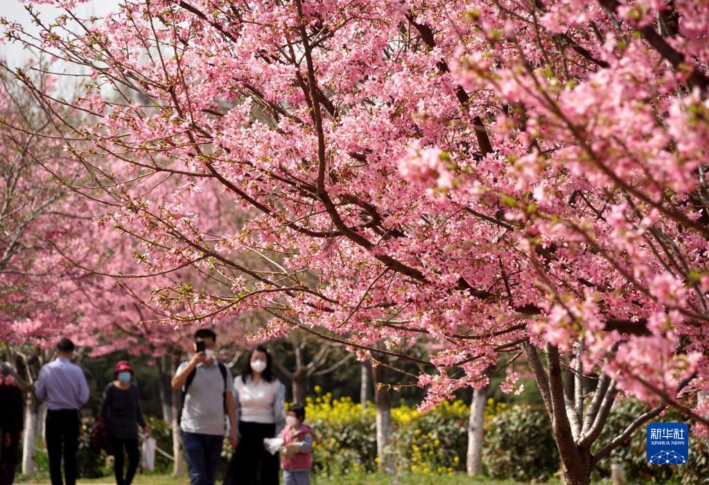 當(dāng)日,2023年河南·滎陽(yáng)第八屆黃河櫻花節(jié)在滎陽(yáng)市古柏渡豐樂(lè)櫻花園開(kāi)幕,園內(nèi)綻放的早櫻吸引市民前來(lái)賞花游玩。古柏渡豐樂(lè)櫻花園有80余種櫻花,約12萬(wàn)余株,早、中、晚櫻次第開(kāi)放,賞花期從3月持續(xù)至4月中旬。
