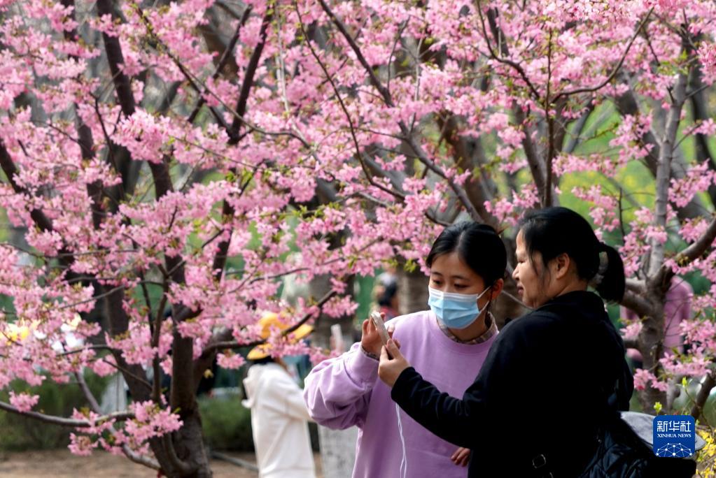 當日,2023年河南·滎陽第八屆黃河櫻花節在滎陽市古柏渡豐樂櫻花園開幕,園內綻放的早櫻吸引市民前來賞花游玩。古柏渡豐樂櫻花園有80余種櫻花,約12萬余株,早、中、晚櫻次第開放,賞花期從3月持續至4月中旬。