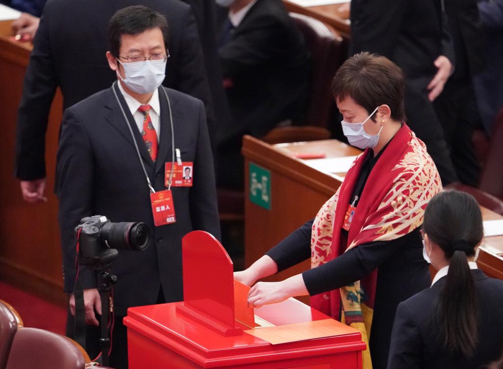 3月10日,十四屆全國人大一次會議在北京人民大會堂舉行第三次全體會議。這是代表在投票。