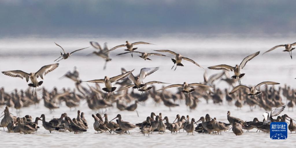 隨著氣溫逐步升高,大批候鳥在江西鄱陽湖區陸續集結起飛,開始北歸之旅。