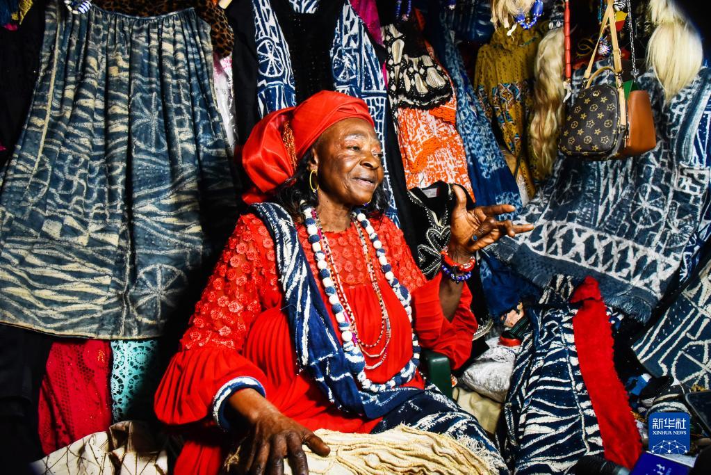 恩多普是主要流行于喀麥隆西部大區的一種布料,可以制成衣物、帽子和項鏈等。制作過程中,先用墨線在白色棉布上繪制紋樣,再用干燥的棕櫚葉脈做線把紋樣扎起來,經靛藍的植物染料浸染后,拆去棕櫚葉脈,便得到藍底白紋的恩多普。如今,眾多喀麥隆婦女投入恩多普制作領域,這不僅改善了她們的生活,也推動了文化的傳承。