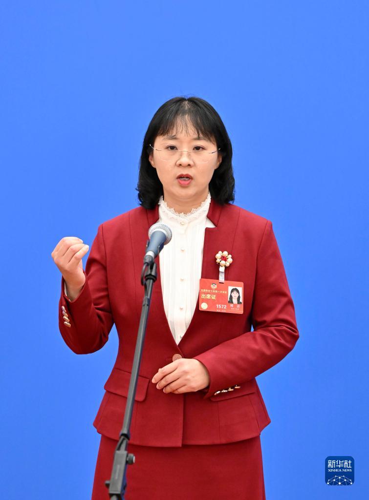 3月11日,全國政協十四屆一次會議第三場“委員通道”集體采訪活動在北京人民大會堂新聞發布廳舉行。這是全國政協委員周清接受媒體采訪。