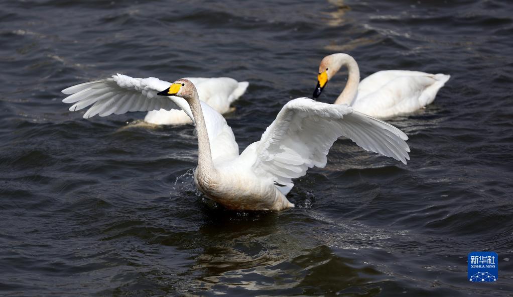 春天里,在遼寧省錦州市女兒河水面上,幾十只大天鵝在此棲息逗留,成為一道亮麗的風(fēng)景。