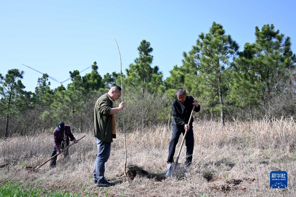 3月10日,張偉(右一)在陸沖山栽樹。
