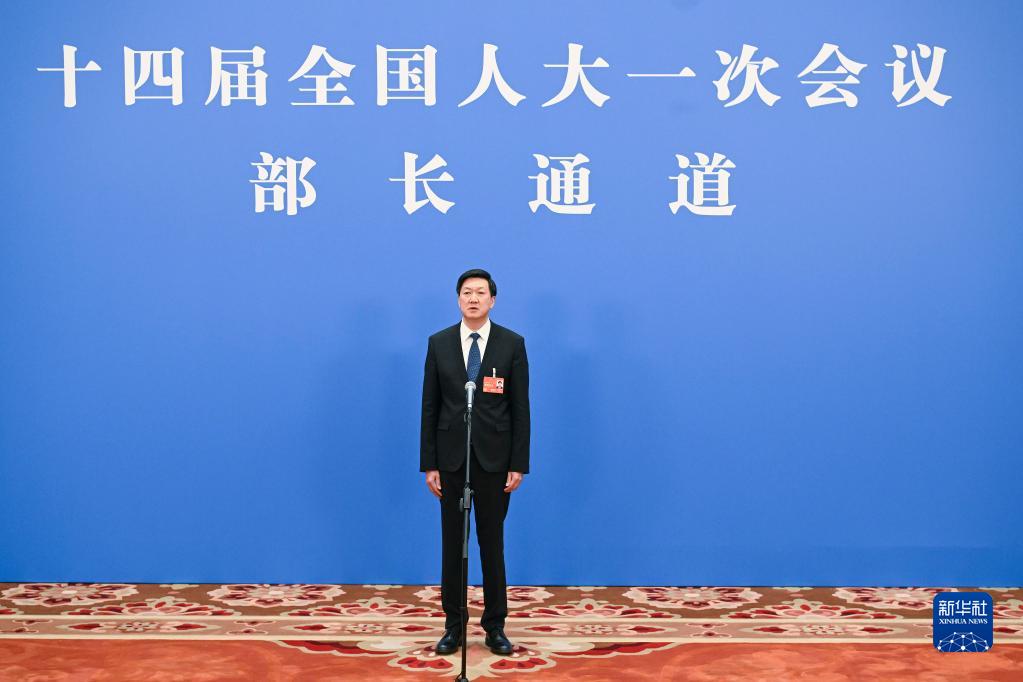 3月12日,第十四屆全國人民代表大會第一次會議舉行第三場“部長通道”采訪活動。這是國家體育總局局長高志丹接受媒體采訪。