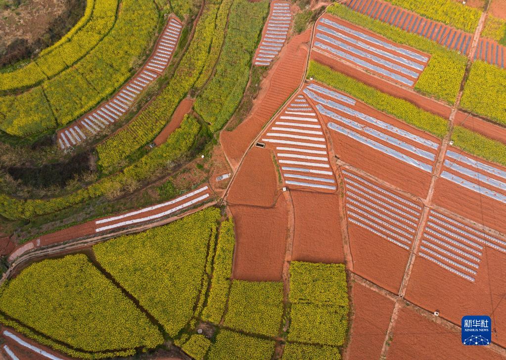 這是3月11日拍攝的四川省榮縣樂德鎮天宮廟村的田園景色(無人機照片)。