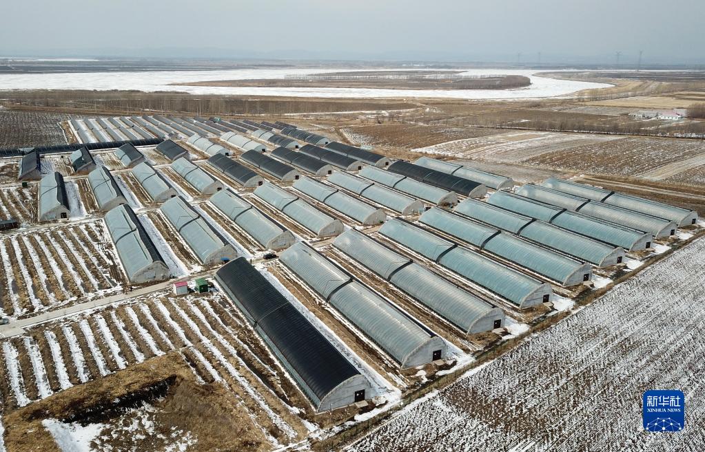 這是黑龍江省佳木斯市郊區現代農業產業園區的棚室(3月9日攝,無人機照片)。