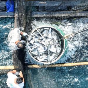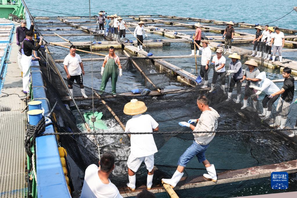 3月24日,日本籍漁船在萬寧大洲島水域裝運章雄魚苗。