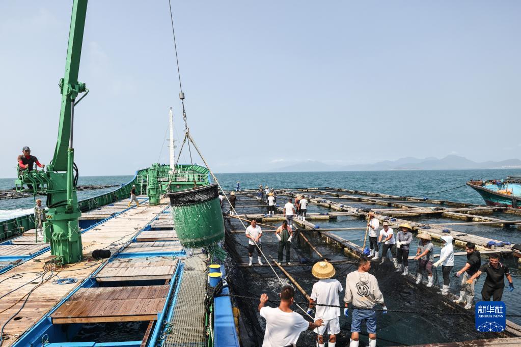 3月24日,日本籍漁船在萬寧大洲島水域裝運章雄魚苗。