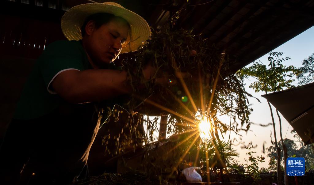 3月25日,景邁山茶農巖門對新采摘的茶葉進行殺青。