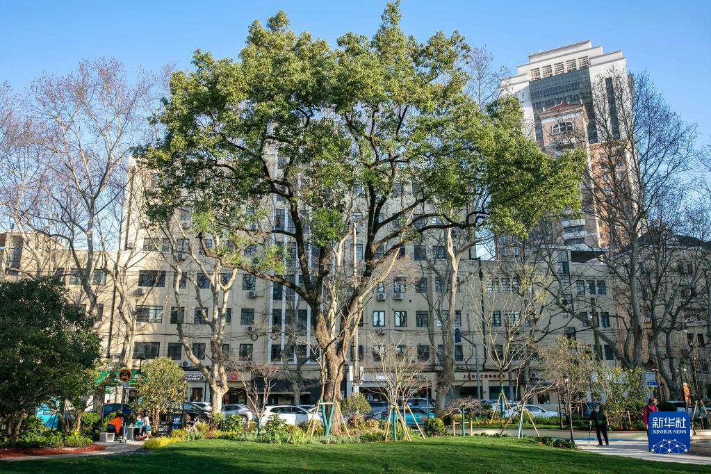 這是3月14日拍攝的上海市徐匯區(qū)衡山路旁的一處口袋公園。