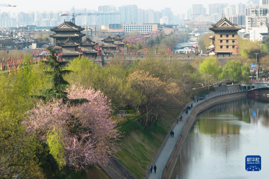 近日,陜西西安明城墻旁春意漸濃,吸引不少市民游客前來踏青。