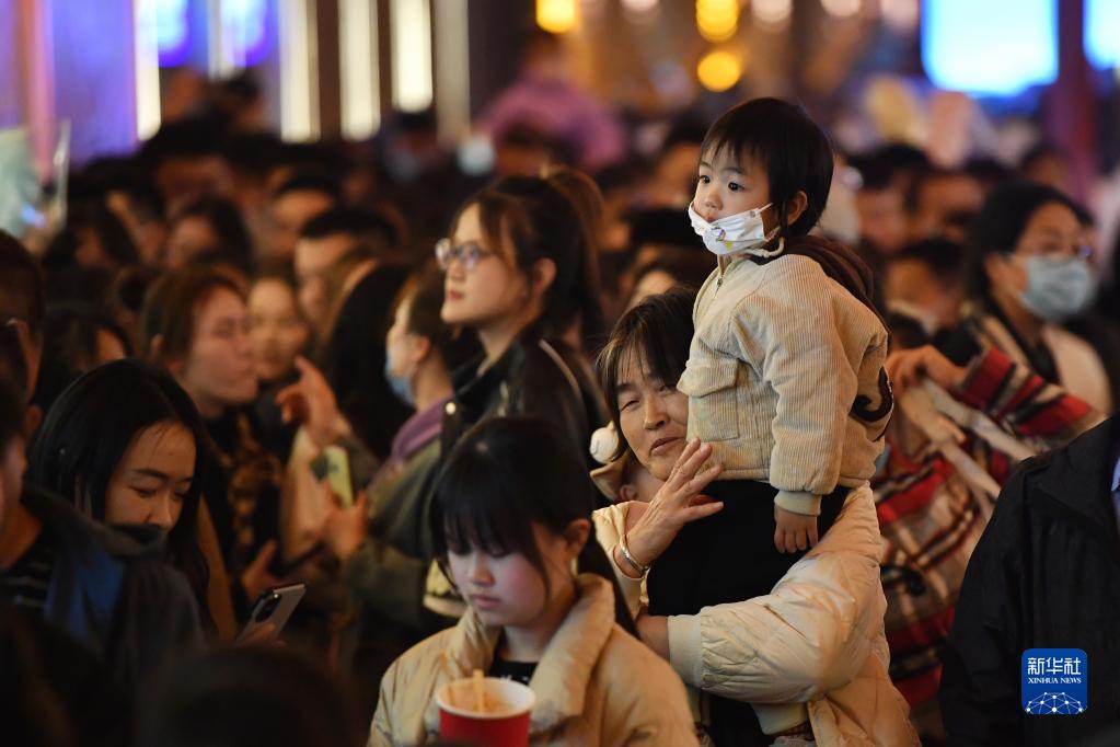 3月25日,小游客在觀看“黃河食渡文化夜市”特色表演。