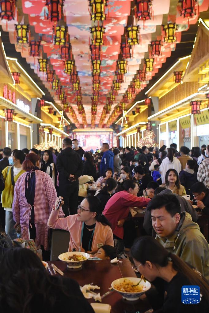 3月25日,游客在“黃河食渡文化夜市”品嘗美食。