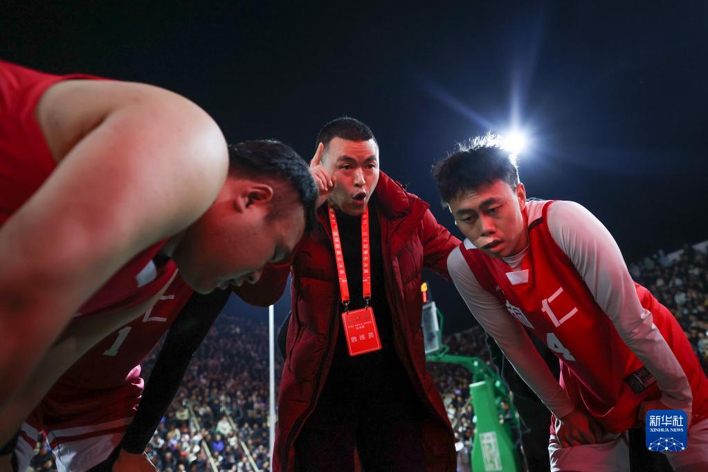 3月26日,銅仁隊教練員張坤(中)在場邊指導球員。銅仁隊與畢節隊進行三四名決賽。