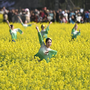 3月26日,演員在梅蓉村的油菜花田里表演。