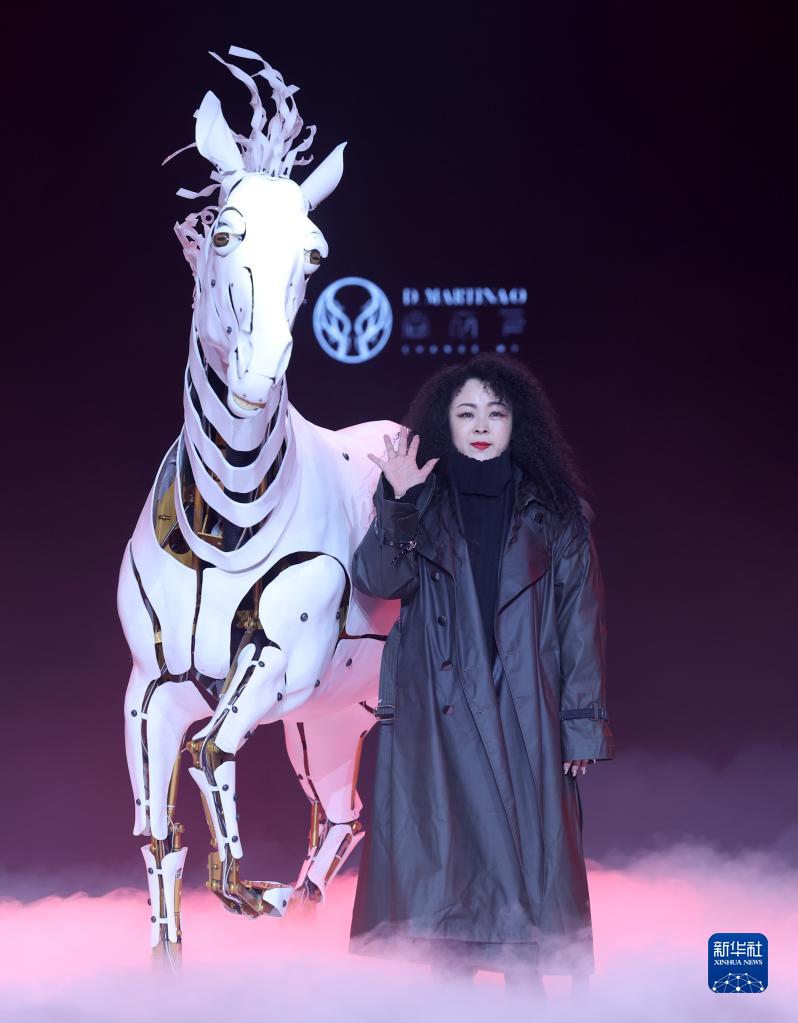 當日,主題為“視界·邊界”的時裝秀在北京舉行的中國國際時裝周2023秋冬系列上上演。設計師丁潔以婦好鸮尊為設計靈感,模特佩戴3D打印發飾,繞行秀場特別設置的“戰馬”,上演了一場歷史與未來“時空對話”的時裝秀。