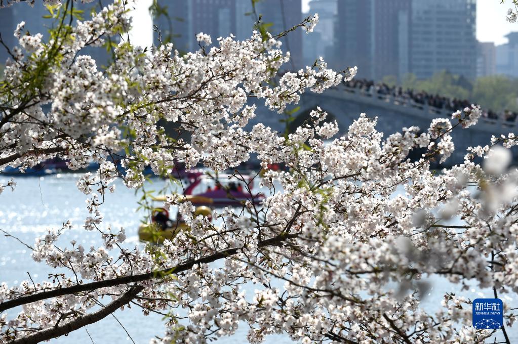 春暖花開,北京玉淵潭公園花紅柳綠,春意濃濃。