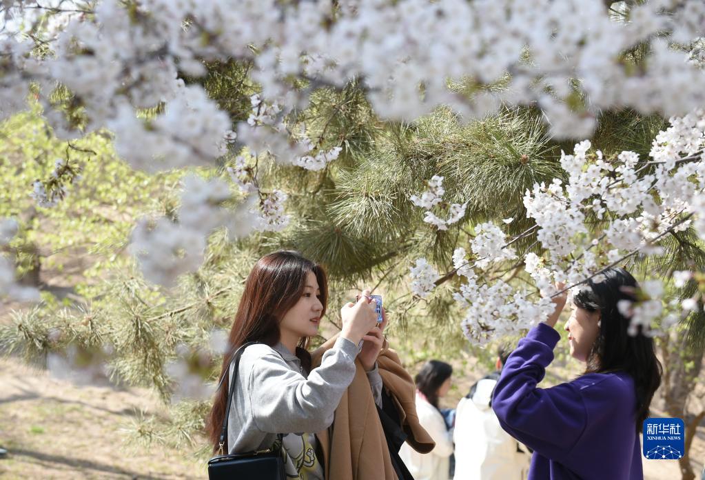 春暖花開,北京玉淵潭公園花紅柳綠,春意濃濃。