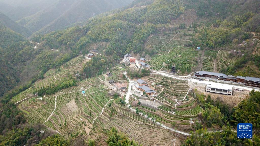 這是3月12日拍攝的新化縣奉家鎮渠江源村一處生態茶園(無人機照片)。