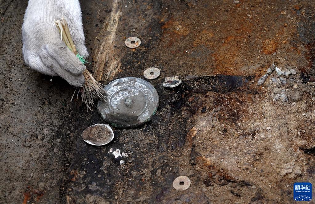 工作人員在宋國故城遺址內的唐代墓葬進行清理作業(3月25日攝)。新華社記者 李安 攝