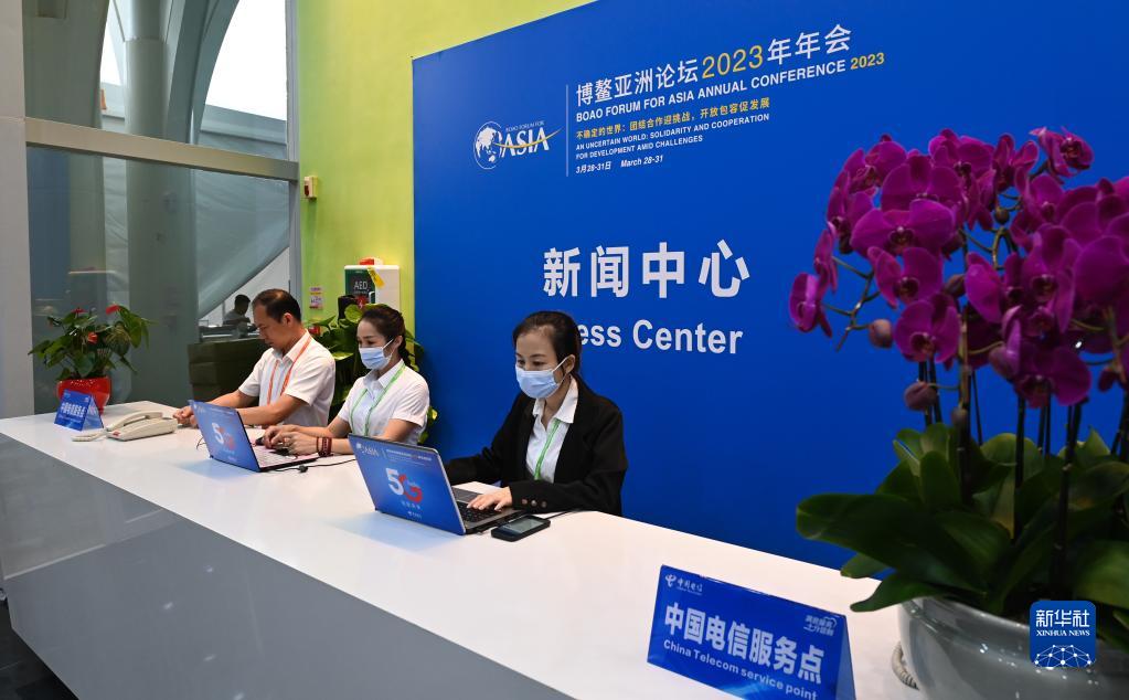 3月27日,工作人員在博鰲亞洲論壇新聞中心工作。