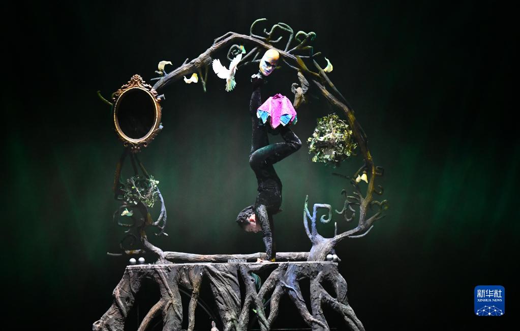 3月27日晚,在位于山東省濟南市的山東劇院,演員表演魔術節目《月光白鴿》。