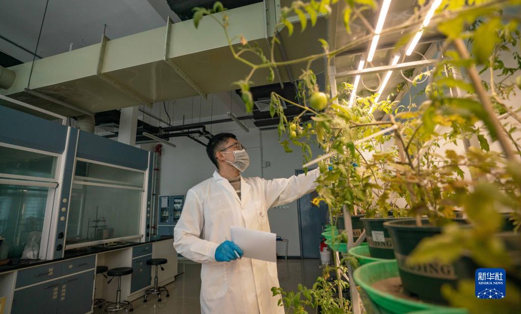 3月28日,南開大學(xué)—滄州渤海新區(qū)綠色化工研究院課題組工作人員在查看施用新型緩釋肥料后的西紅柿秧苗生長情況。