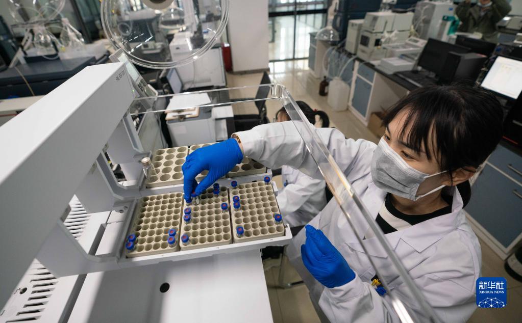 3月28日,南開大學—滄州渤海新區綠色化工研究院分析檢測中心工作人員在放置待檢測樣品。