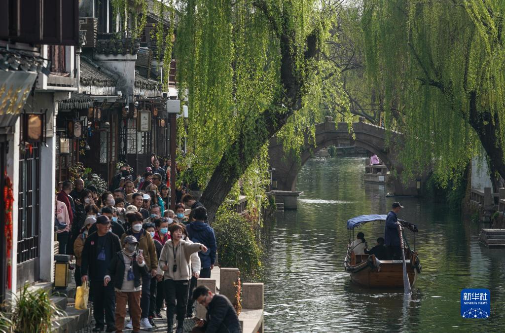 春意漸濃,著名的水鄉(xiāng)古鎮(zhèn)江蘇省昆山市周莊鎮(zhèn)進(jìn)入旅游旺季,游人如織。