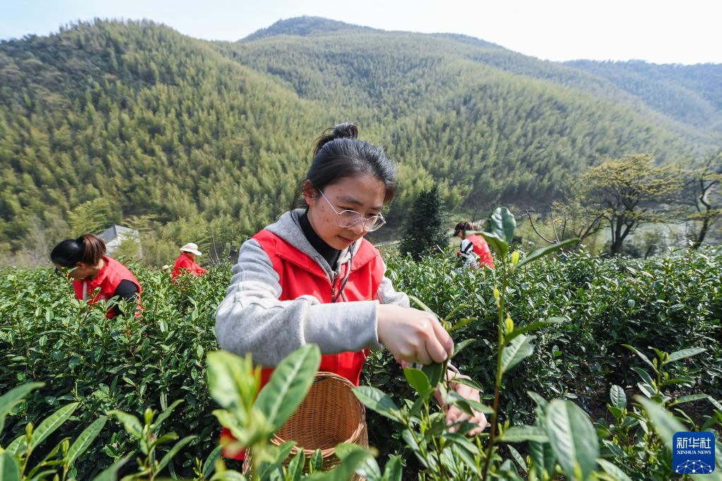 近期,隨著氣溫升高,浙江省湖州市長興縣小浦鎮大岕口村的數百畝春茶進入了采摘期,當地組織共富工坊的黨員志愿者、“杏福”義工和鄉賢幫助低收入農戶采摘、加工春茶,解決人工短缺、銷路不暢等問題,助農增收。