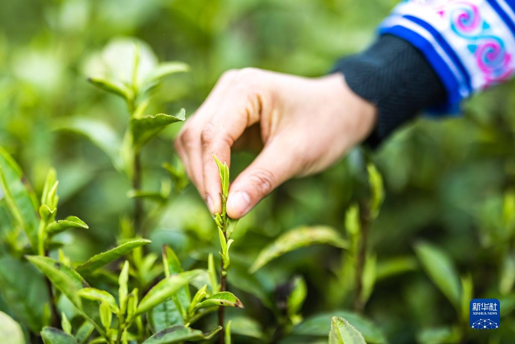 3月28日,茶農在貴州省畢節市百里杜鵑管理區一茶場采摘明前茶。