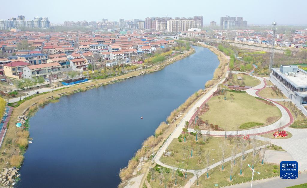 這是3月28日在河南省商丘市睢縣拍攝的利民河公園(無人機照片)。