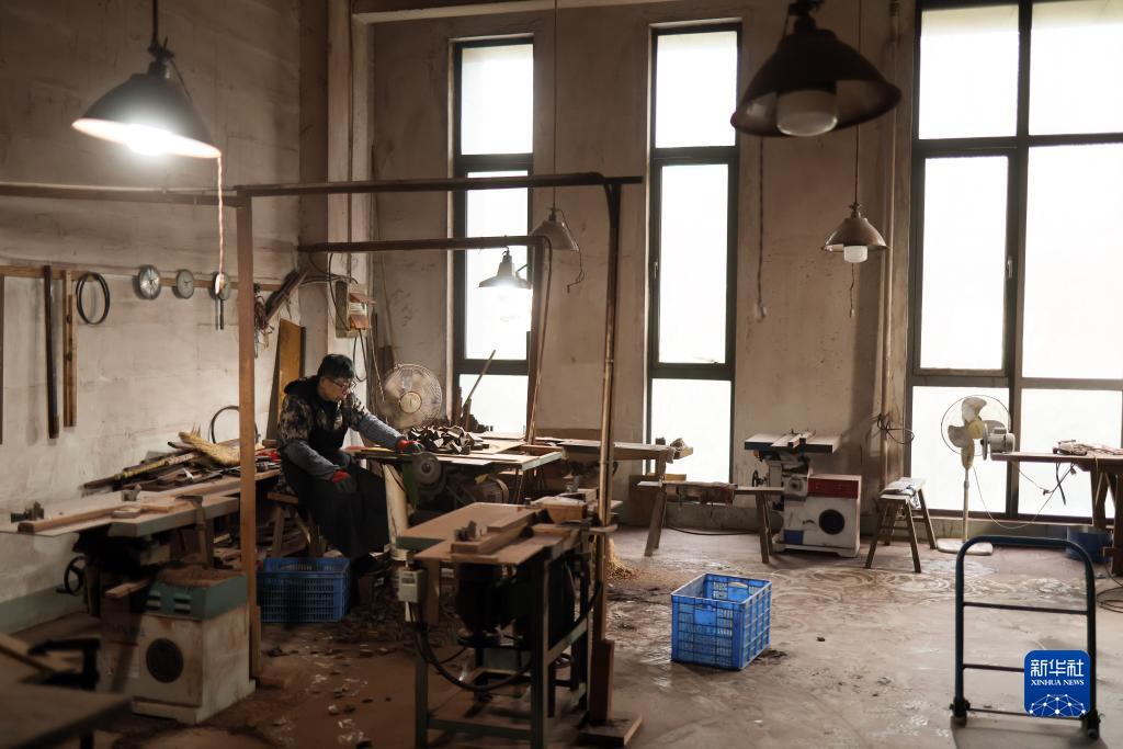 3月28日,在江蘇無錫梅村街道二胡產業園,工人在車間工作。