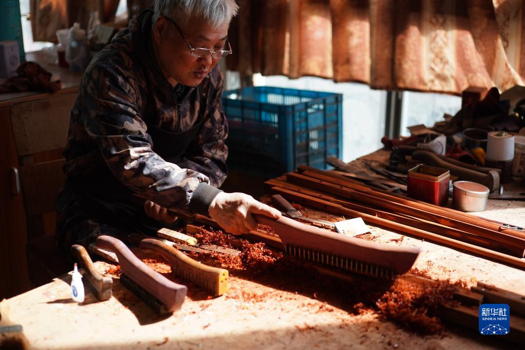 3月28日,在江蘇無錫梅村街道二胡產業園古月琴坊車間,工人在制作二胡。