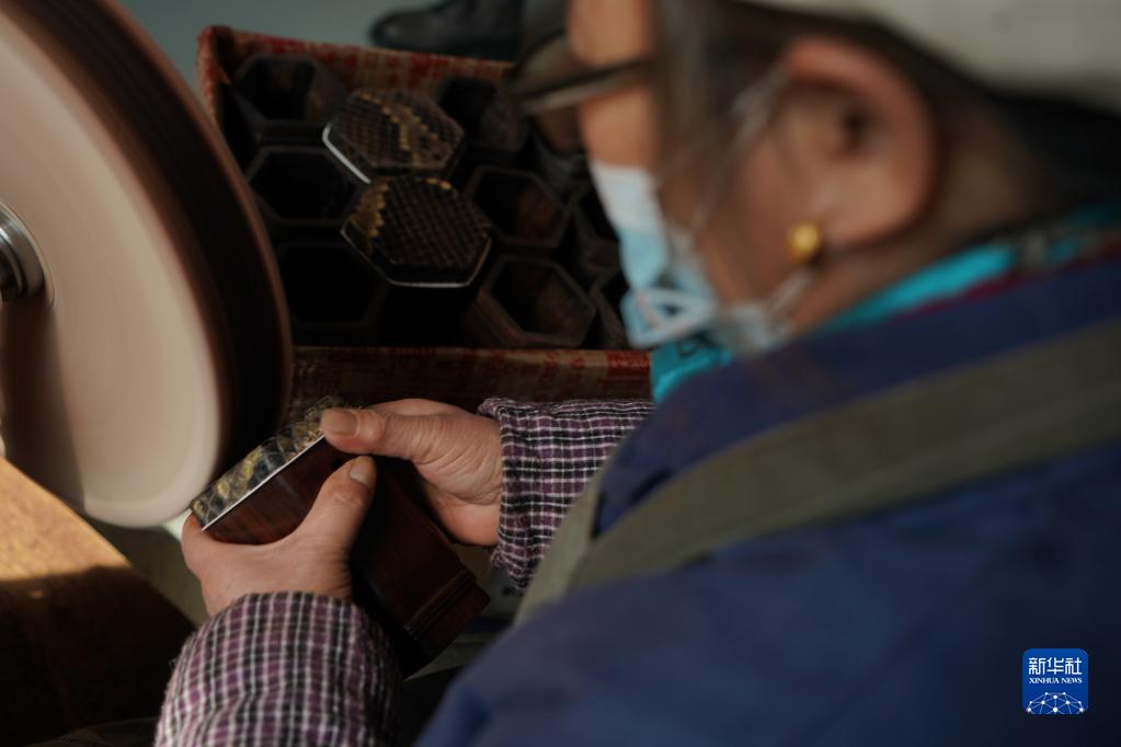 3月28日,工人在江蘇無錫梅村街道二胡產業園古月琴坊車間拋光琴筒。