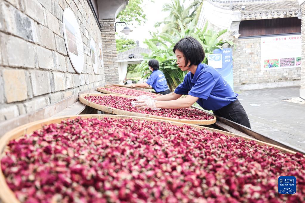 3月28日,工作人員在三亞創新發展主題展上整理產自三亞亞龍灣的玫瑰。