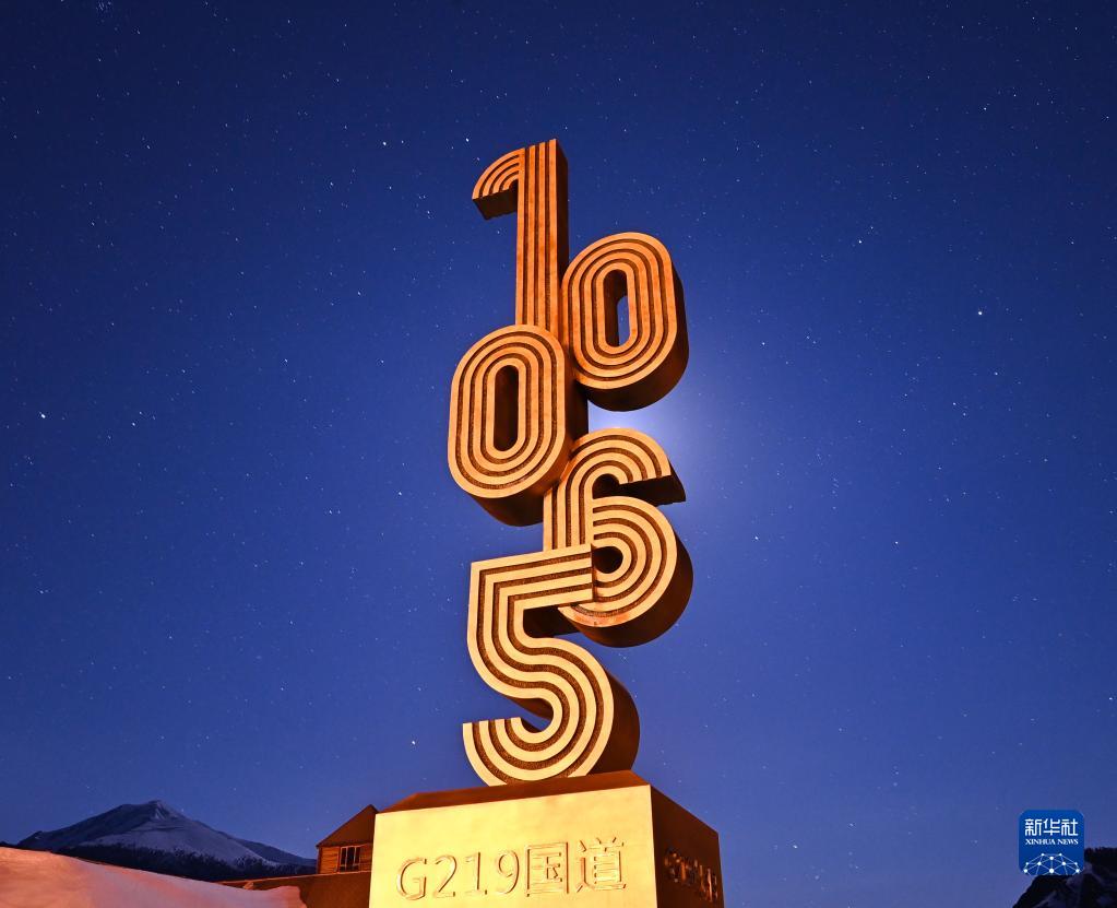 3月29日凌晨時分拍攝的G219國道0公里紀念碑。