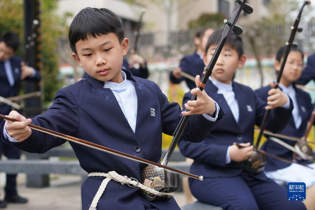 3月29日,江蘇無錫梅村實驗小學(xué)學(xué)生在練習(xí)二胡。