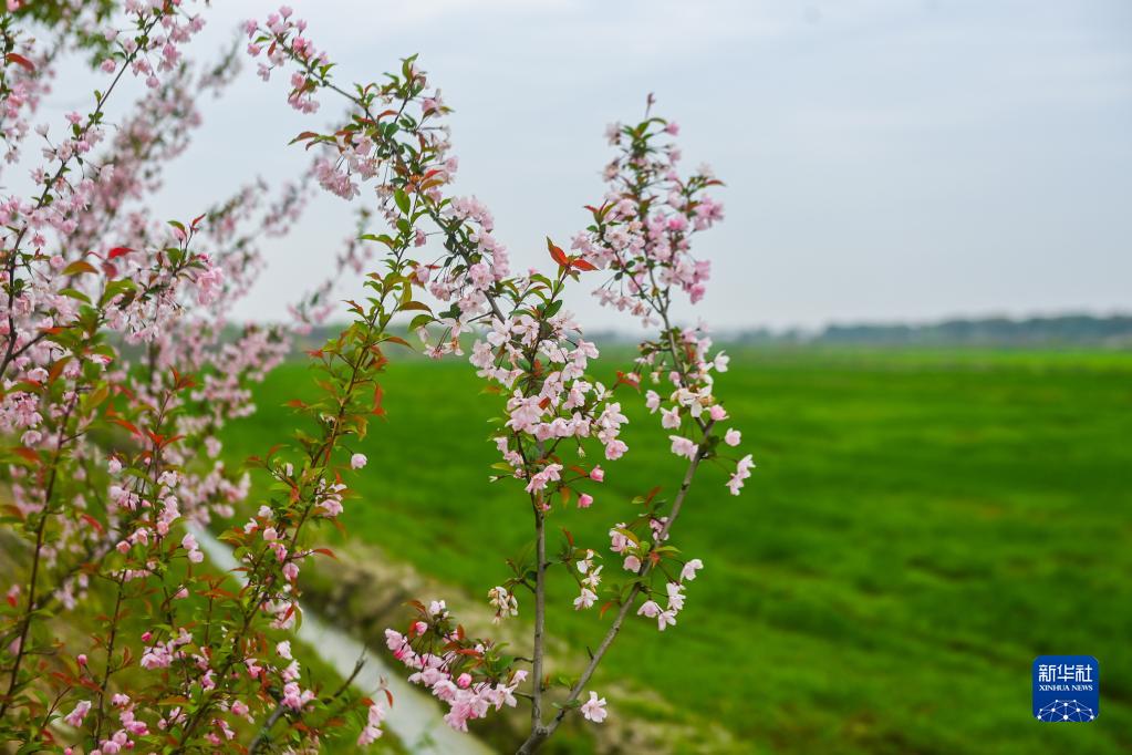 3月29日,浙江省湖州市東林鎮(zhèn)東華村經(jīng)過土地綜合整治后建成的高標(biāo)準(zhǔn)農(nóng)田邊春花綻放。