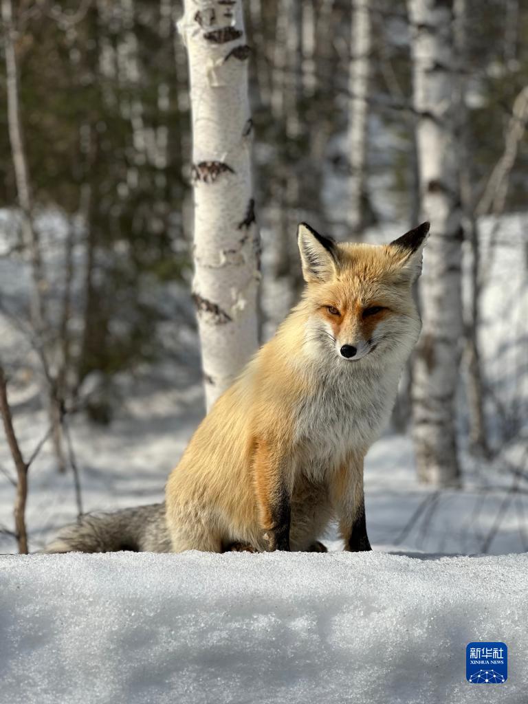 3月29日,一只赤狐在喀納斯風景區休憩。