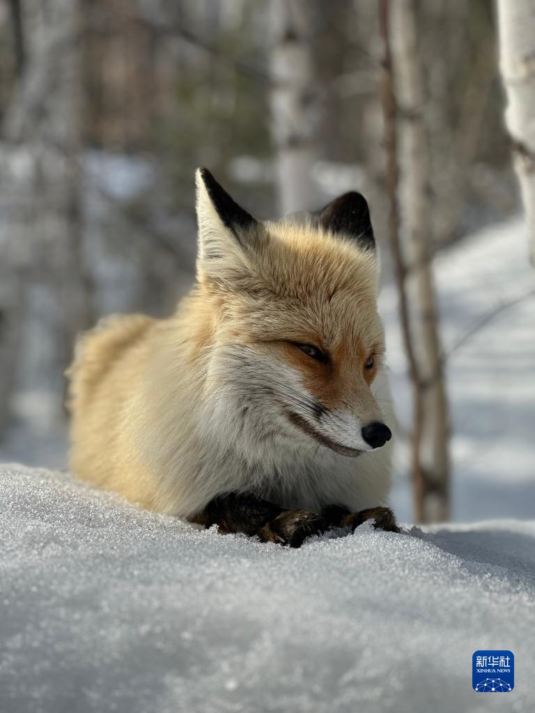3月29日,一只赤狐在喀納斯風景區休憩。