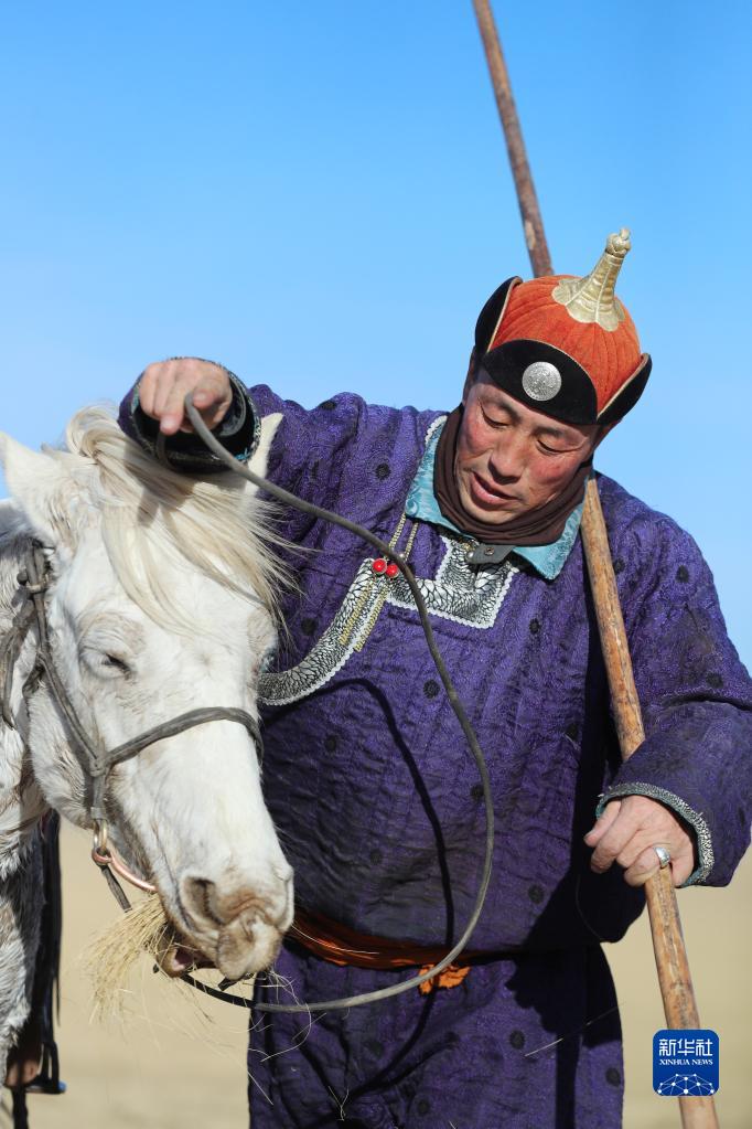 春日到來,內蒙古錫林郭勒盟西烏珠穆沁旗天氣轉暖,當地牧民趕著馬匹,來到草原上馴馬。