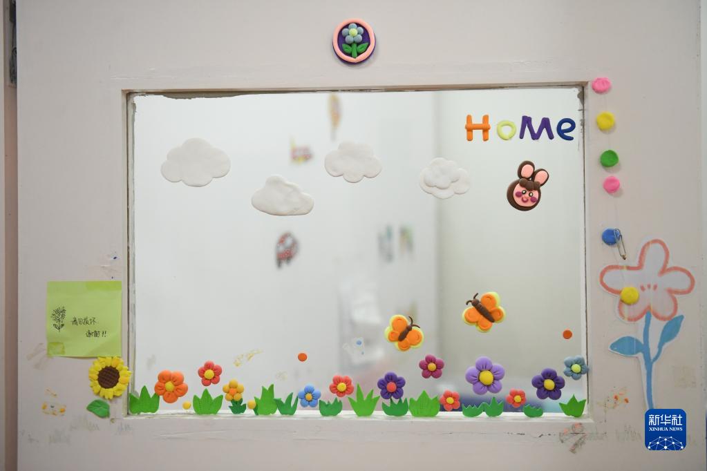 這是自閉癥青少年和老師一起裝扮的教室門(3月29日攝)。