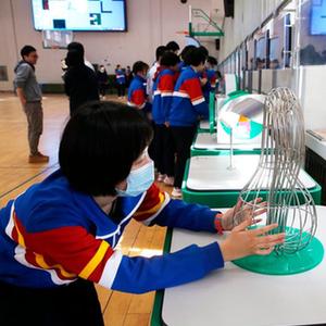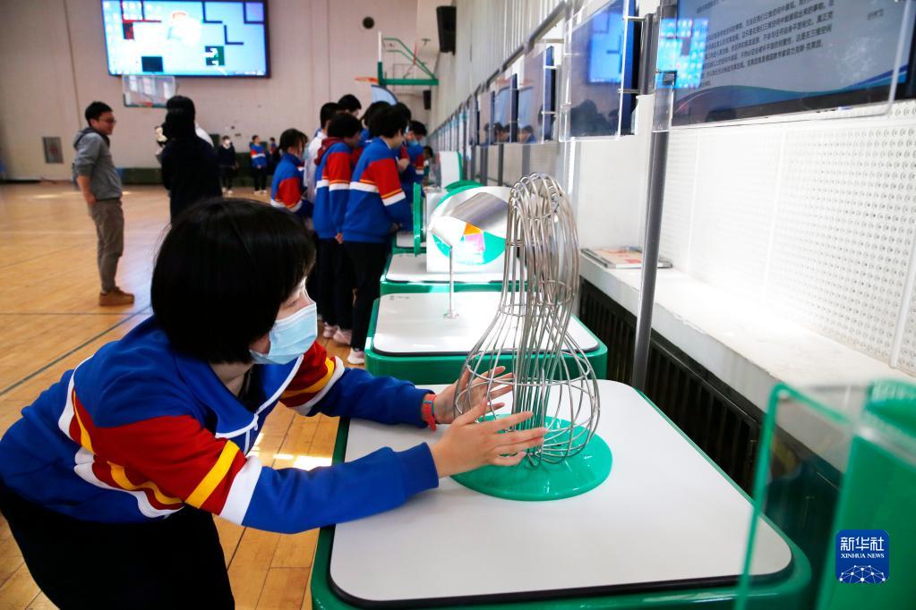 3月29日,中學生在校園流動科普巡展中體驗趣味科學裝置。
