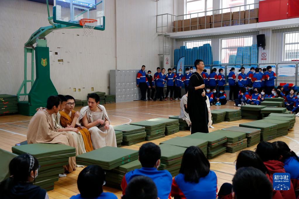 3月29日,中學生在展示根據數學歷史故事創編的話劇。