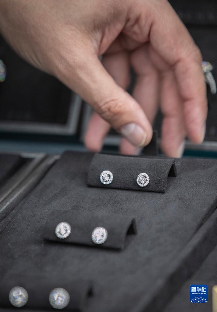 3月29日,參展商在以色列拉馬特甘的鉆石展現(xiàn)場展示鉆石。